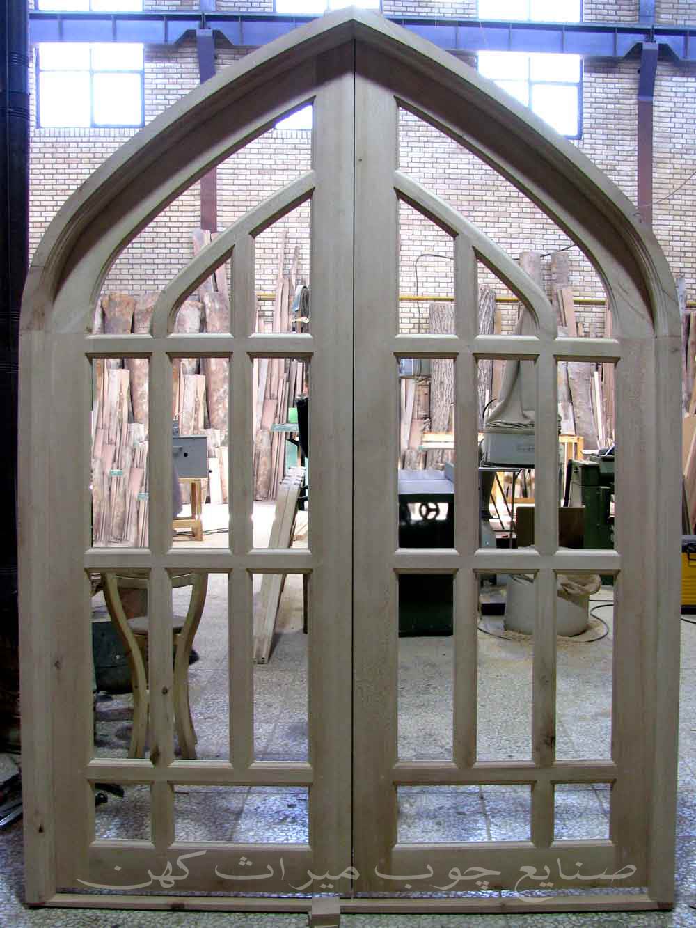 درب های سنتی قواره بری شیشه رنگی کتیبه دار